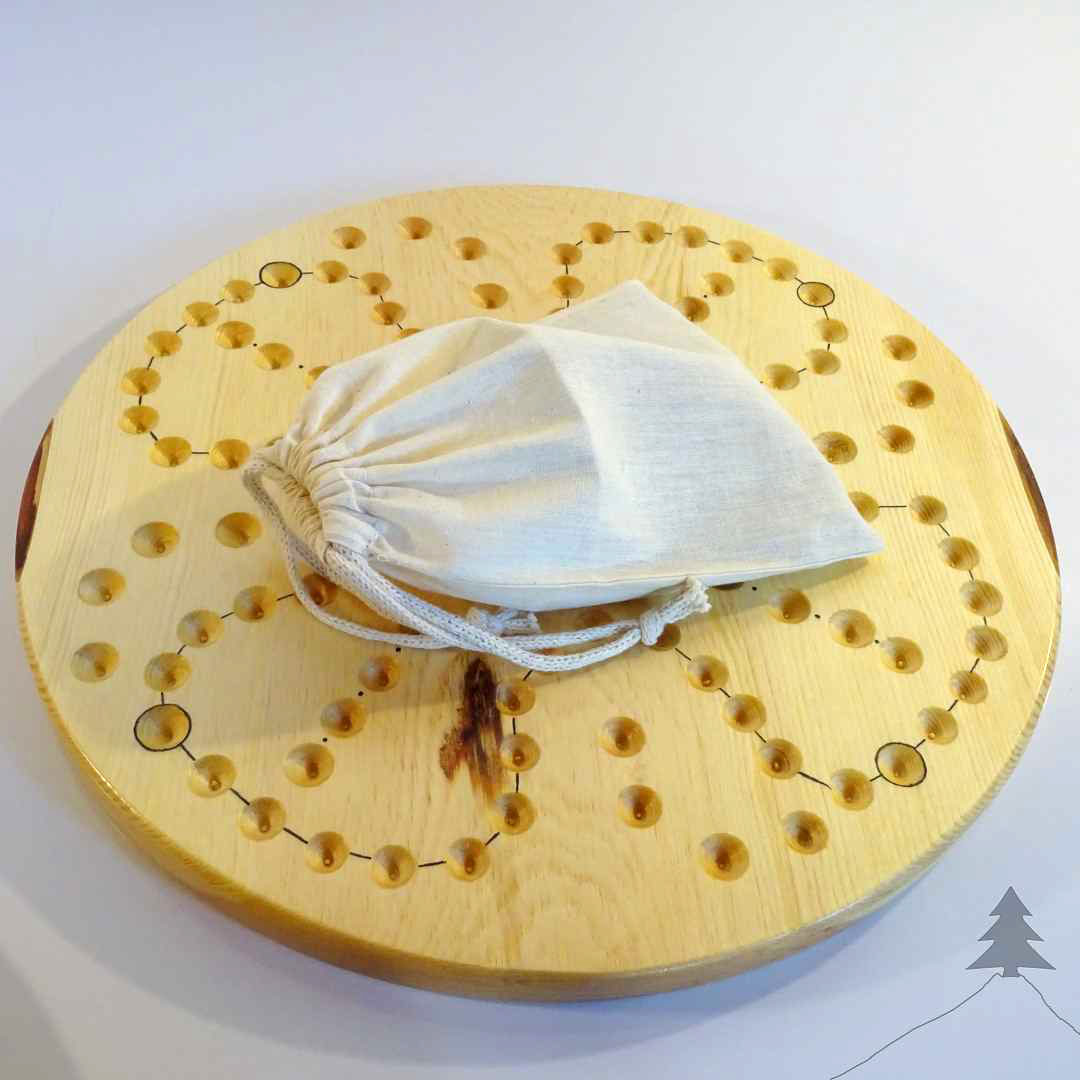 Comprend: plateau + billes + jeu de cartes + règle du jeu + pochette de rangement
