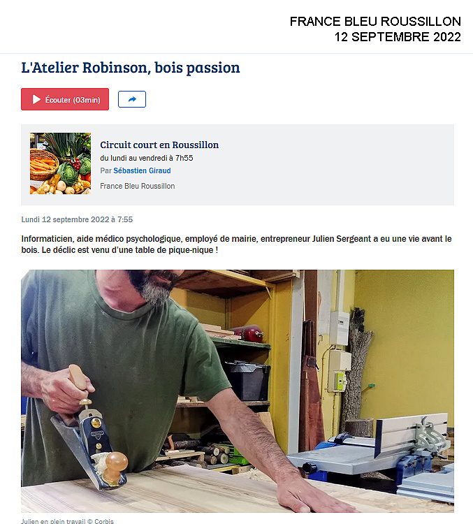 Artisan ébéniste, basé à Bages, Julien Sergeant fabriquant de mobilier en bois massif et agencement sur mesure.